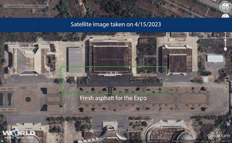 The satellite image above was taken in July 2022. Newer imagery shows the preparation for the Expo. Note the new pavement.